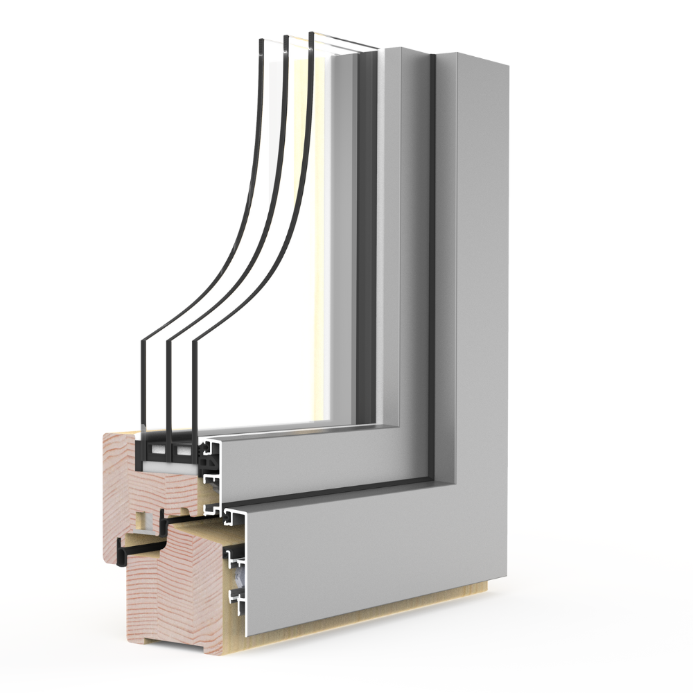 Mit Aluminiumbeschichtung an der Außenseite der Fenster ist das Holz vor witterungsbedingten Einflüssen geschützt.