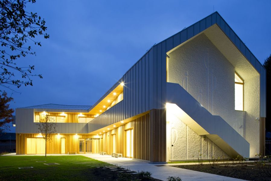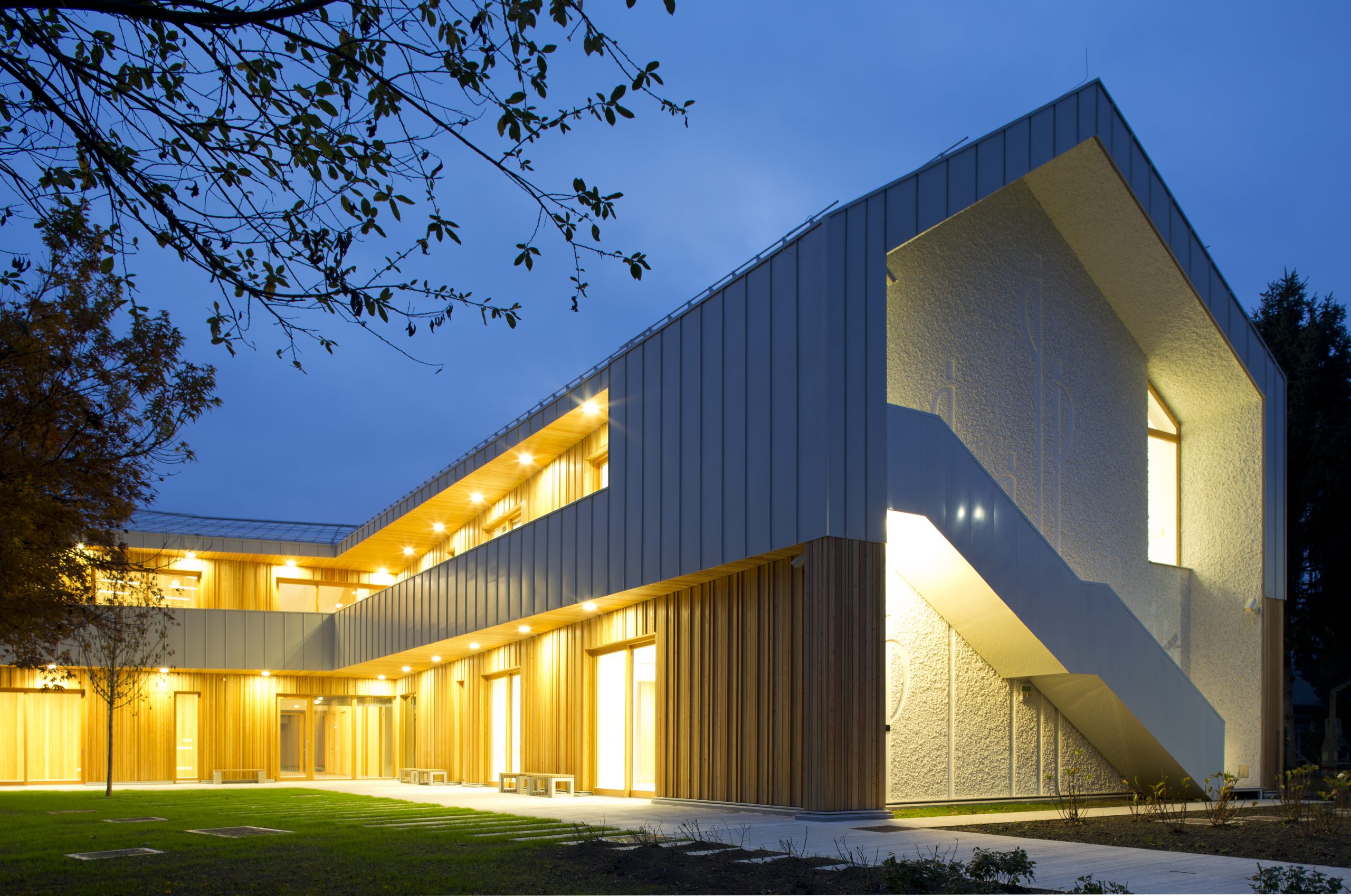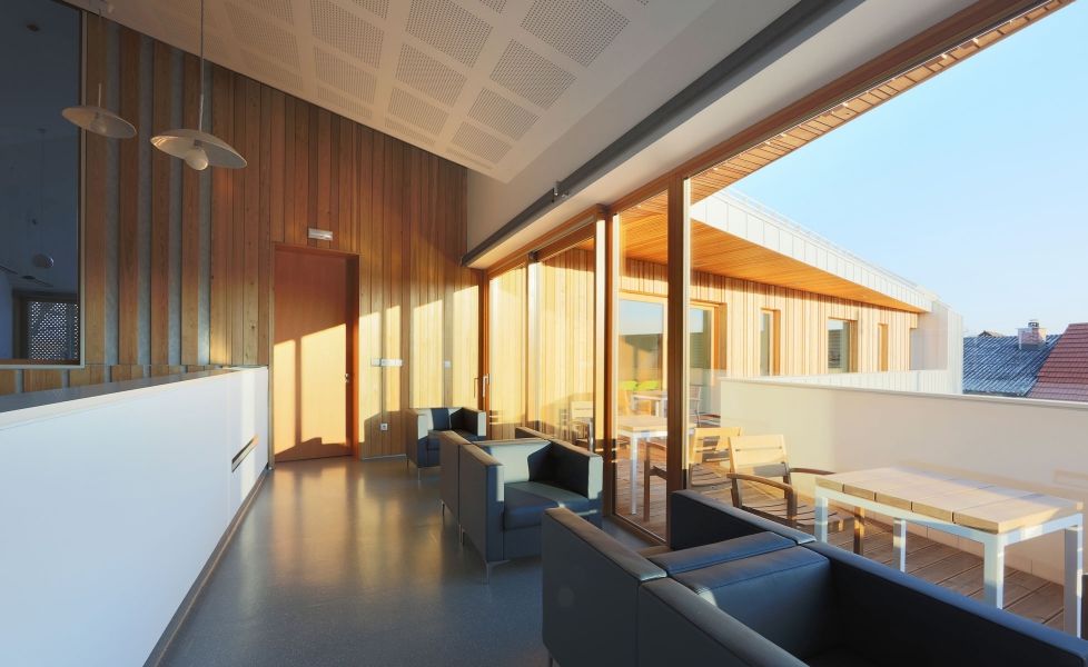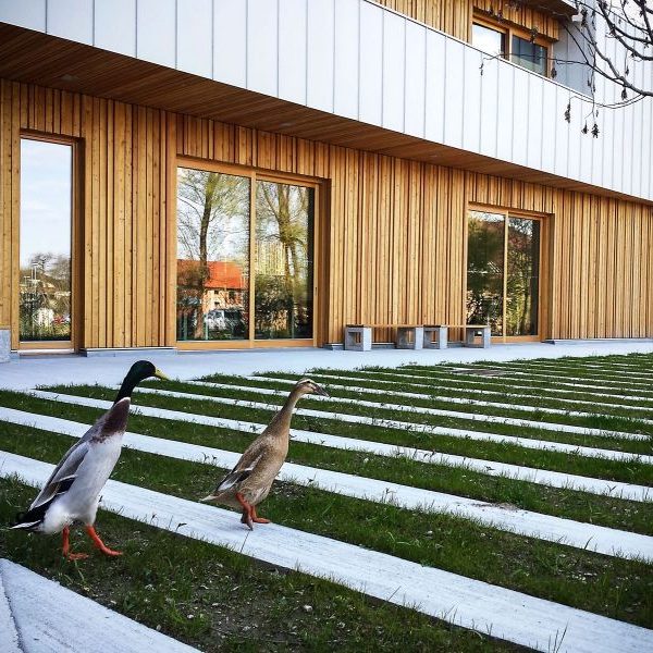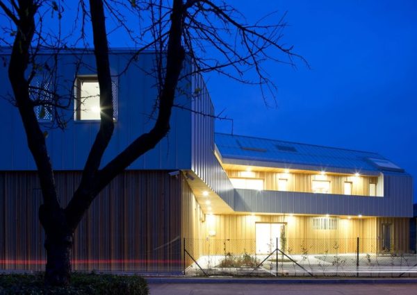 Im Versorgungs- und Arbeitszentrum INCE werden soziale Versorgungsdienstleistungen in den Bereichen Führung, Versorgung und Beschäftigung geleistet unter besonderen Bedingungen und institutioneller Versorgung von Personen mit leichter oder schwerer Störung in der geistigen Entwicklung. Das Gebäude befindet sich am Fluss auf einem verlängerten Grundstück. Sein Entwurf folgt der Typologie des Dorfkerns und der Organisation des alten Anwesens, mit der Aufteilung in ein Wirtschaftsgebäude an der Straße und einen privaten Garten am Fluss. Der Gebrauch typischer Elemente des traditionellen Bauens in Slowenien, „gank“- Balkon, Holz, Dachgesimse und das zweischalige Dach schwächen die Größe des Gebäudes ab und es nähert sich den Maßen der Häuser in der Umgebung an. Die verspielte Form des zweischaligen Daches vereinigt das Gebäude im Gesamten.
